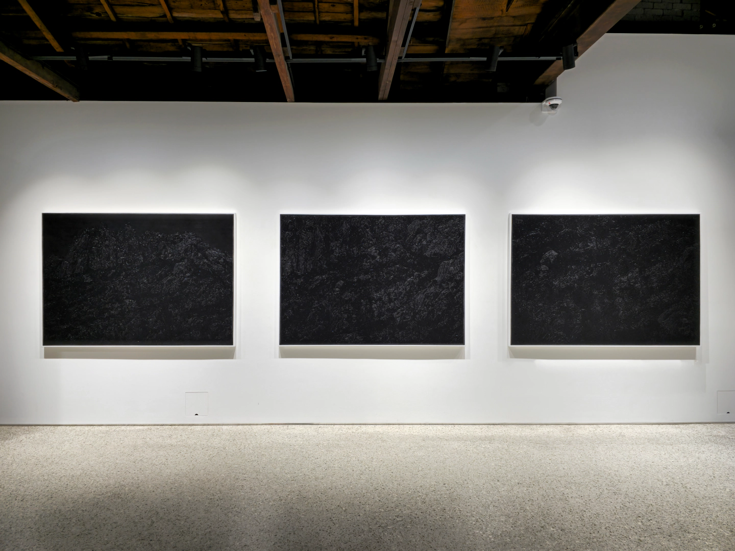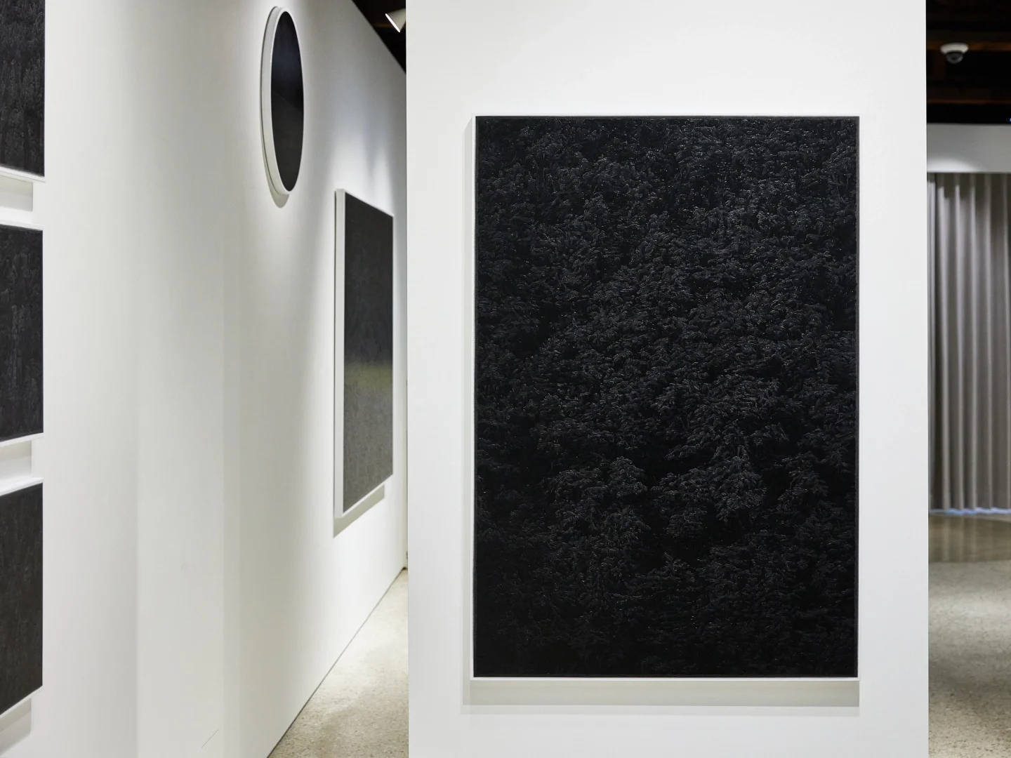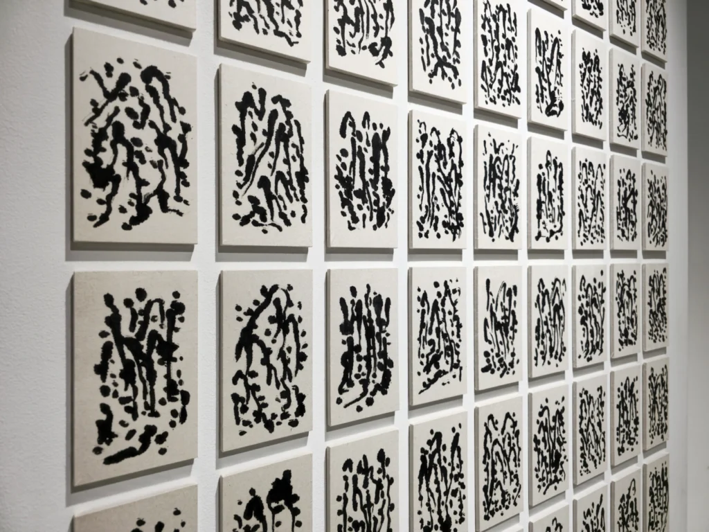 My work aspires to this kind of play—a subtle looseness that allows tension and movement between things. Internally, this play refers to the empty space where visible light dissolves into darkness. Just as countless, spontaneous narratives arise in the mind when gazing at the night sea, I intend for the viewer—when confronted with a black surface stripped of color information—to actively fill and empty that space, a place of hospitality. Externally, it signifies the play between the artwork and the body. At first glance, the painting may appear to be a monochrome black rectangle, yet through its drawn textures and the subtle gloss they create, it pulls the viewer in and then pushes them away again—a space of reflection shaped through movement.