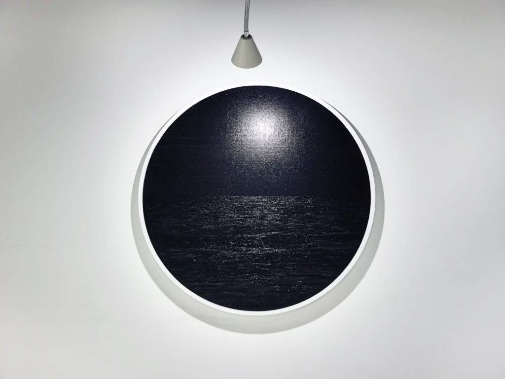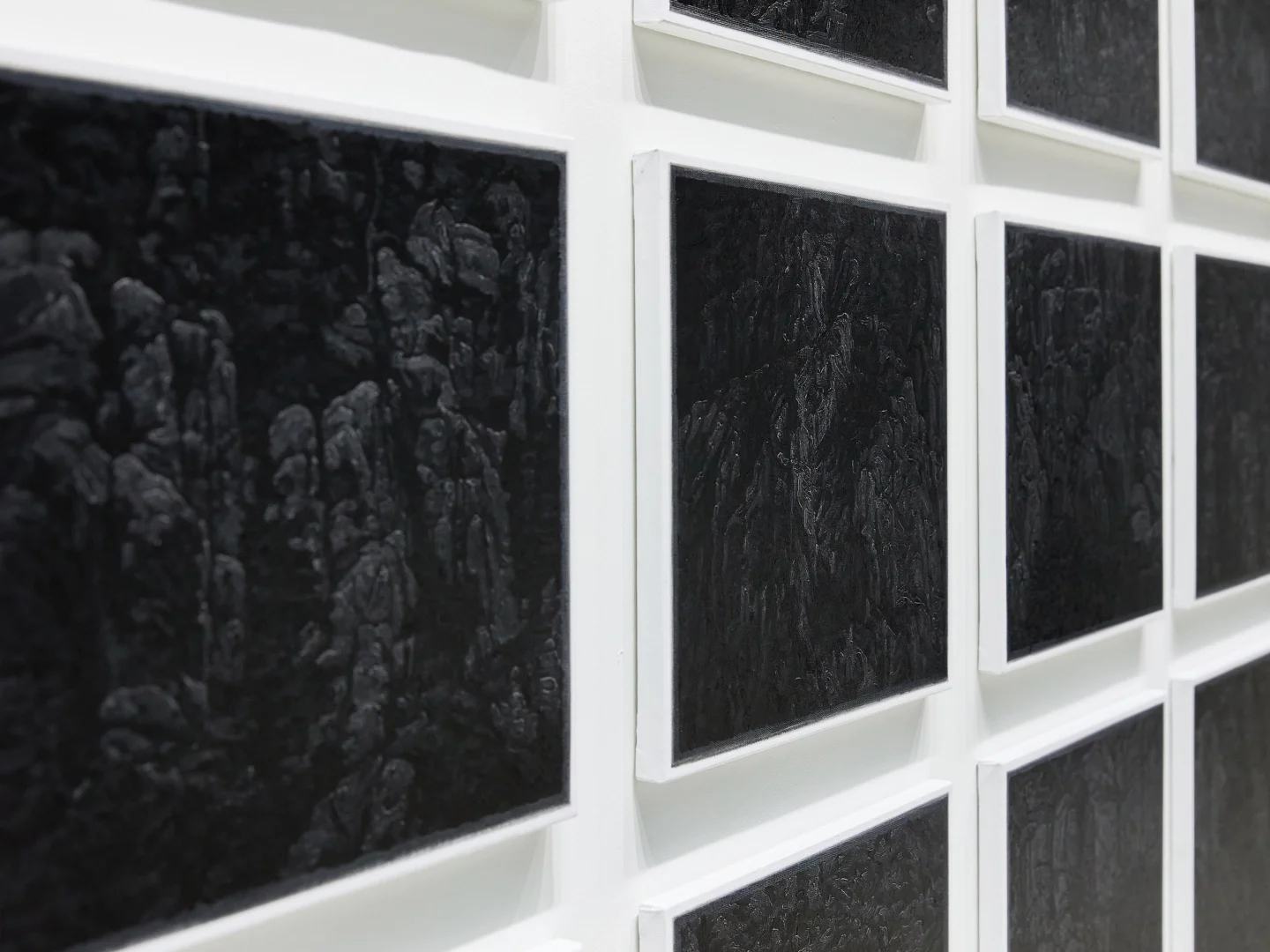나의 작업은 이러한 유격을 지향한다. 이 유격은, 그림 내적으로는 어둠으로 인해 가시광선이 사라진 공간을 말한다. 밤바다를 보고 무작위적 무한한 서사가 마음속에서 생성되는 것과 같이 색의 정보 값이 빠진 검은 화면을 대면한 관객들에게 능동적으로 그 자리를 채우고 비울 수 있게 마련한 환대의 자리이다. 작품 외적으로는 작품과 신체 사이의 거리를 말한다. 언뜻 보면 단색의 검은 사각형으로 보이지만 그려진 요철과 그로 인한 광택으로 끌어들이고 다시 그림으로부터 밀어내는, 움직임으로 사유하는 공간이다.