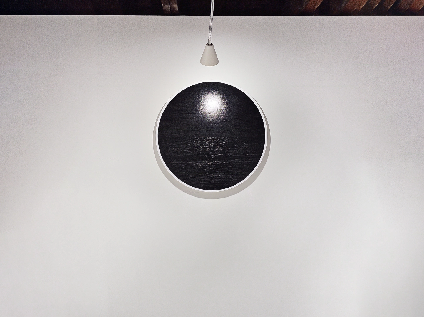 2025, acrylic on canvas, installation with articulated track spotligh, diameter 60 cm (canvas); variable dimensions (installation)